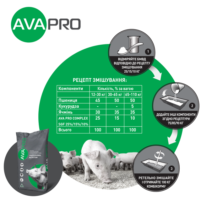 БМВД для свиней 12-110кг AVA PRO Complex SGF Старт Гровер Фініш Універсальний. Мішок 25 кг 1