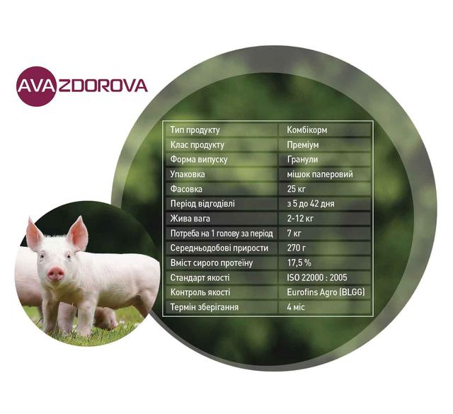 Корм для поросят свиней до 12 кг гранульований AVA ZDOROVA (Здорова) Престарт